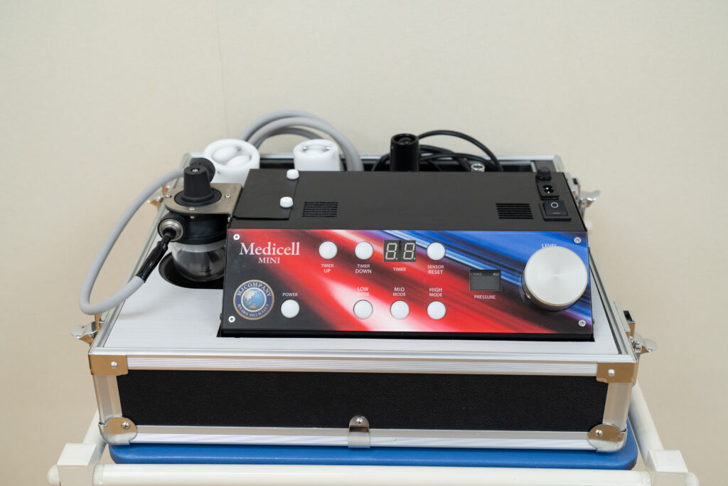 メディセル筋膜療法は、皮膚を直接吸引することによって筋膜の癒着を優しく、素早く、安全にリリース(解放)する療法です。